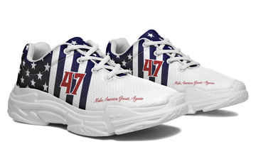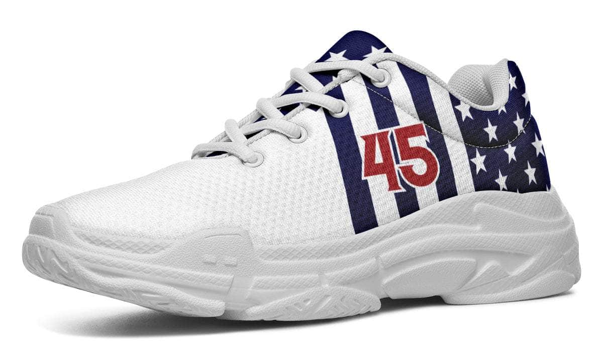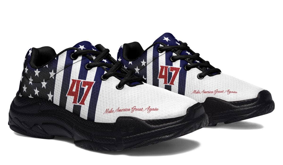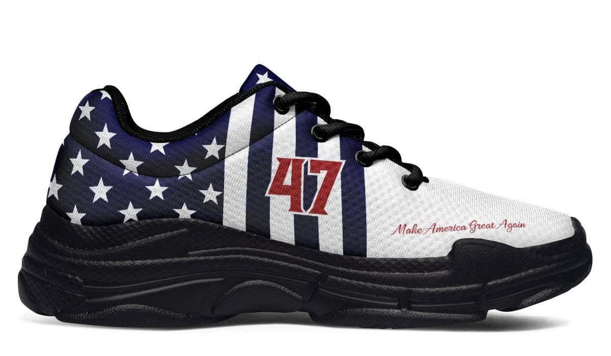 Get ready to stride into history with the 45/47 Victory Chunks, the only sneakers that match the spirit of a true patriot. Bold, unapologetic, and impossible to ignore—these kicks are your declaration of victory in every step.