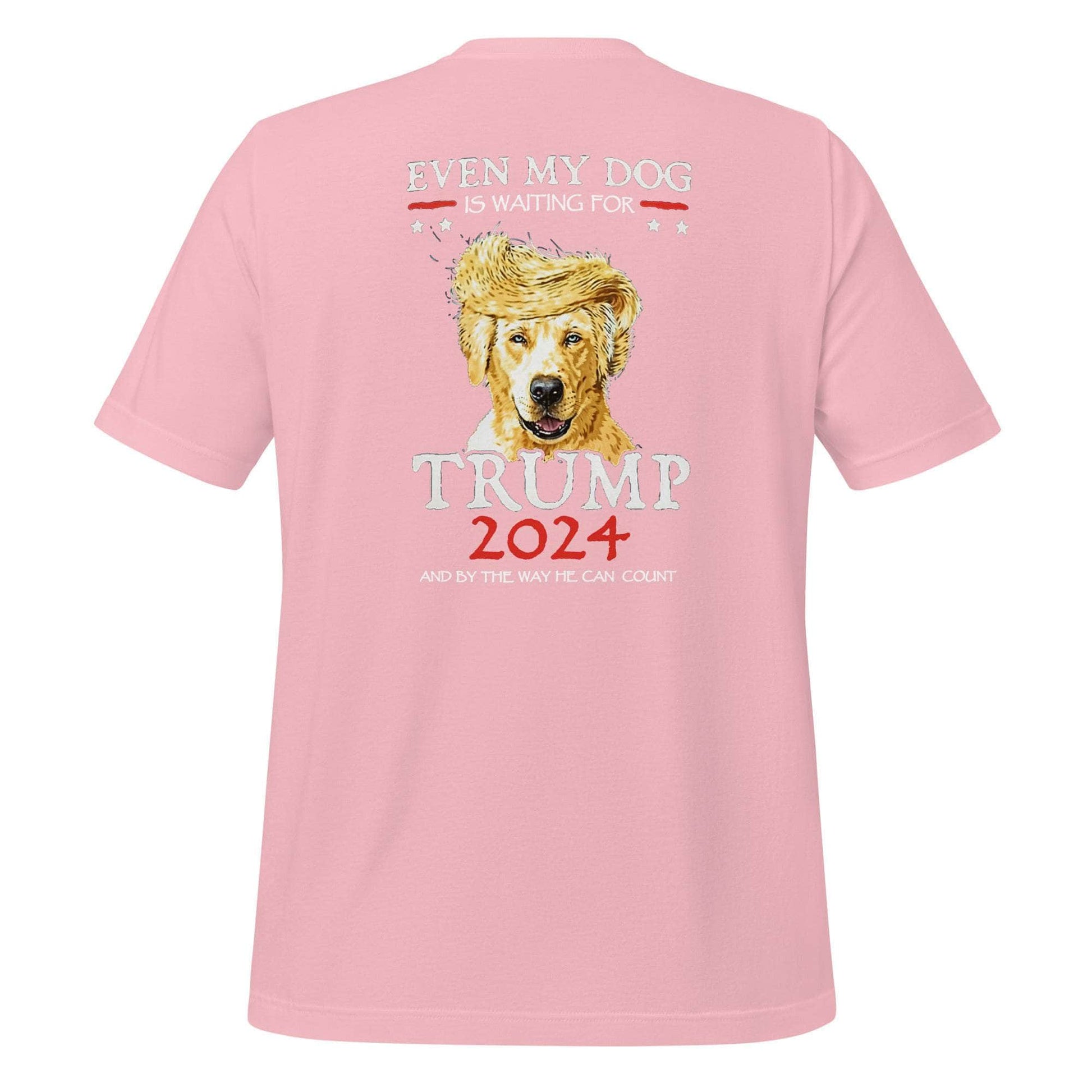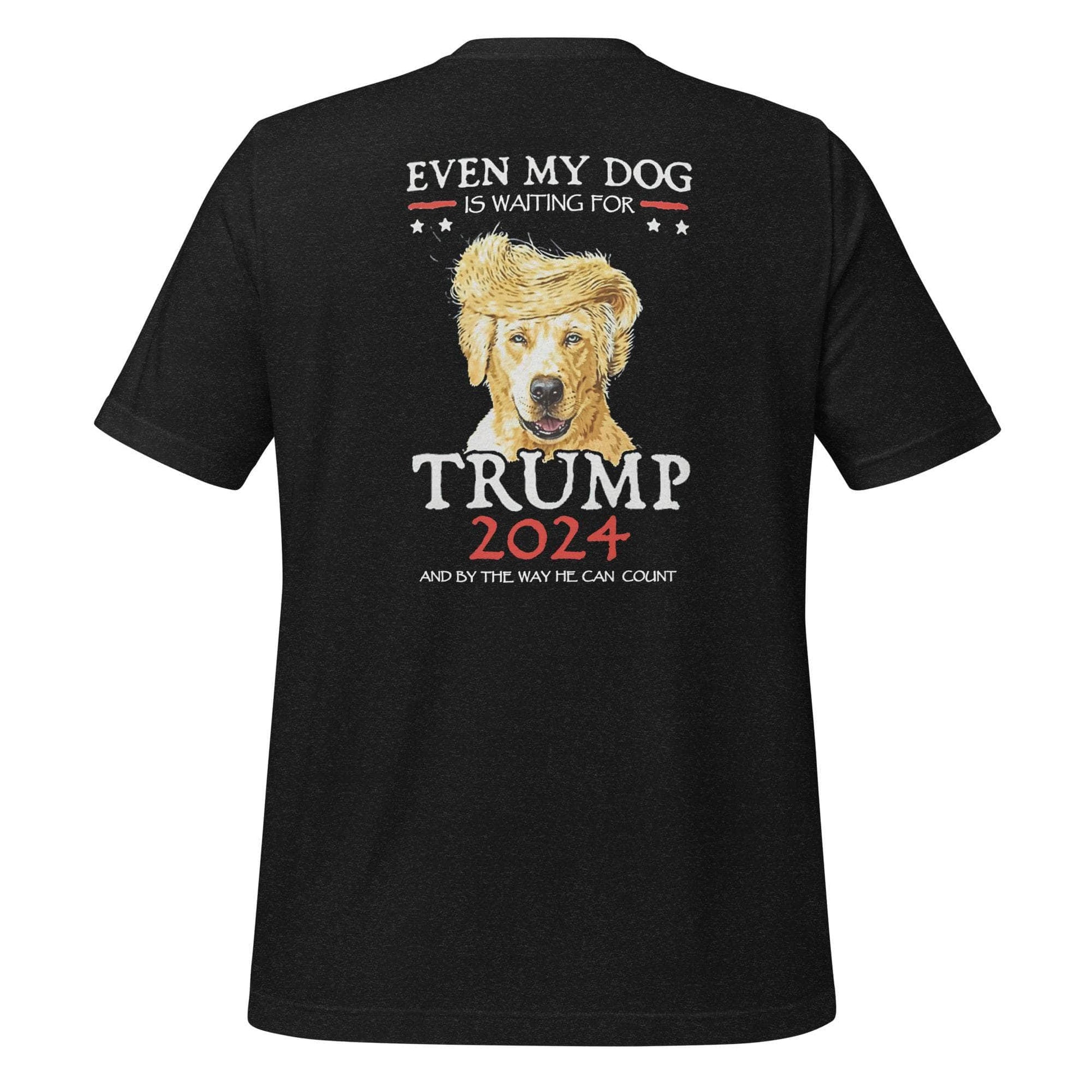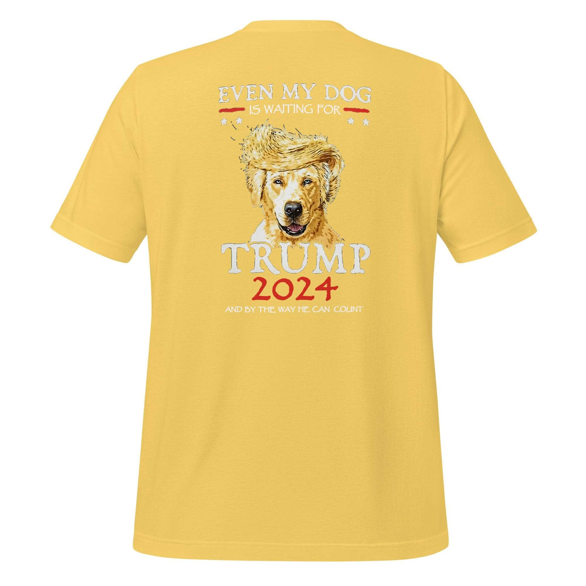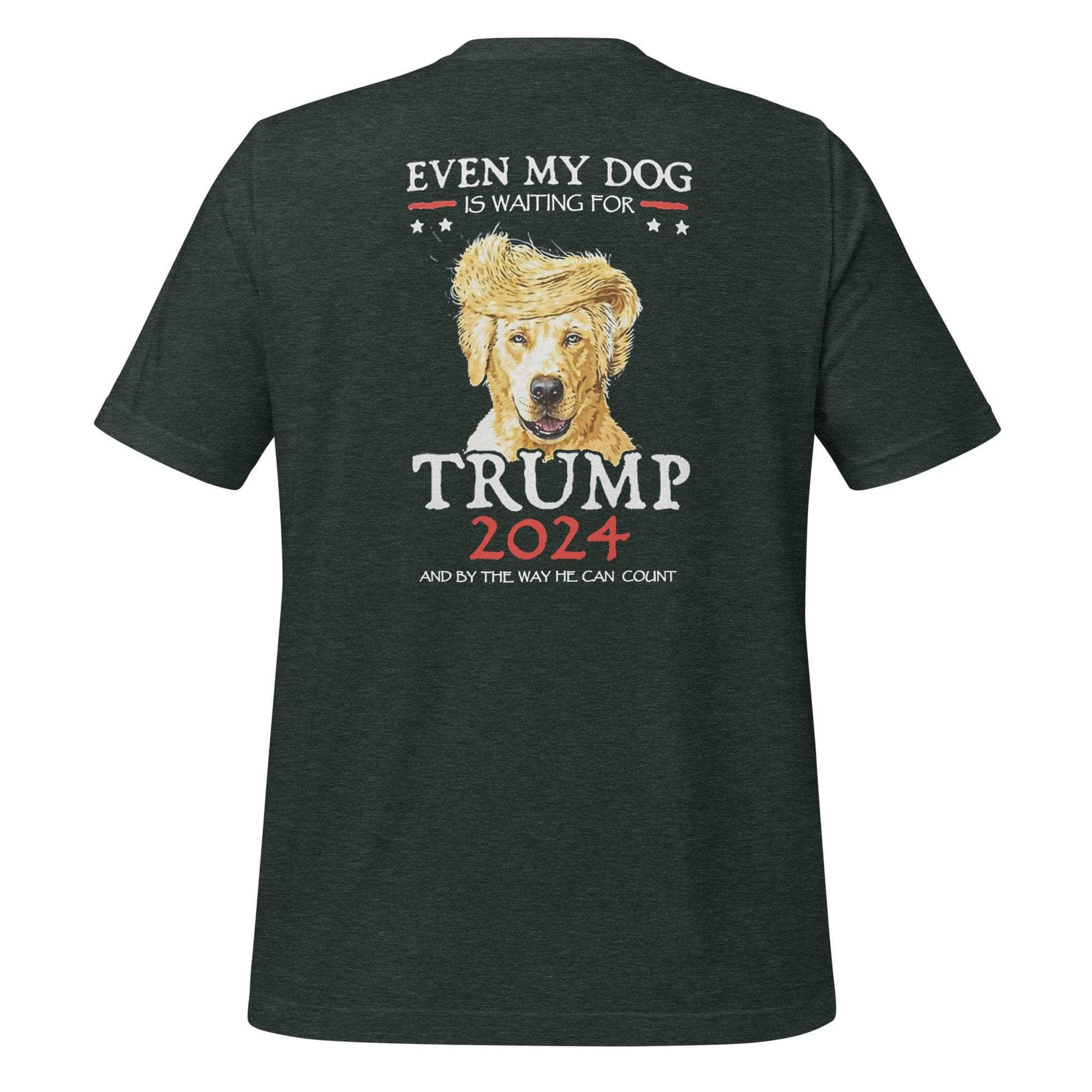Introducing our "Even My Dog Is Waiting for Trump" T-Shirt, the ultimate way to combine your love for President Trump and your furry friend! This t-shirt is a must-have for any proud patriot who enjoys a good laugh: FeaturingĀ an adorable patriotic pooch , eagerly waiting for Trumpās return, sporting his signature hair style! Guaranteed to bring smiles and start conversations.