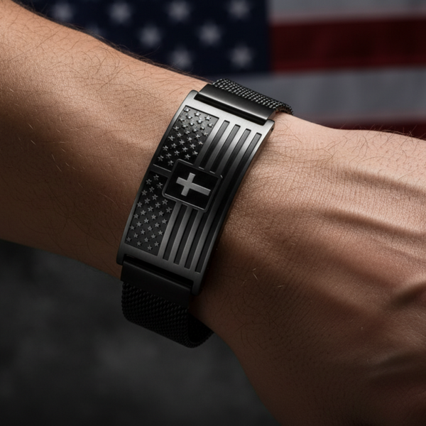 Black is rugged and tactical. Silver is sharp and commanding. Different looks—same message: Faith. Freedom. Strength.