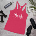 This racerback tank is soft, lightweight, and form-fitting with a flattering cut and raw edge seams for an edgy touch.