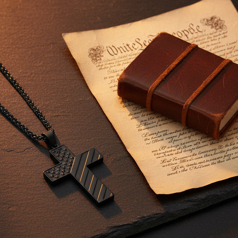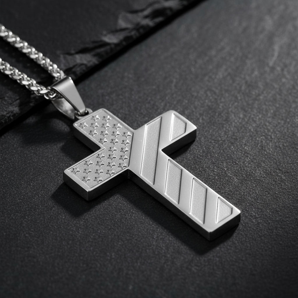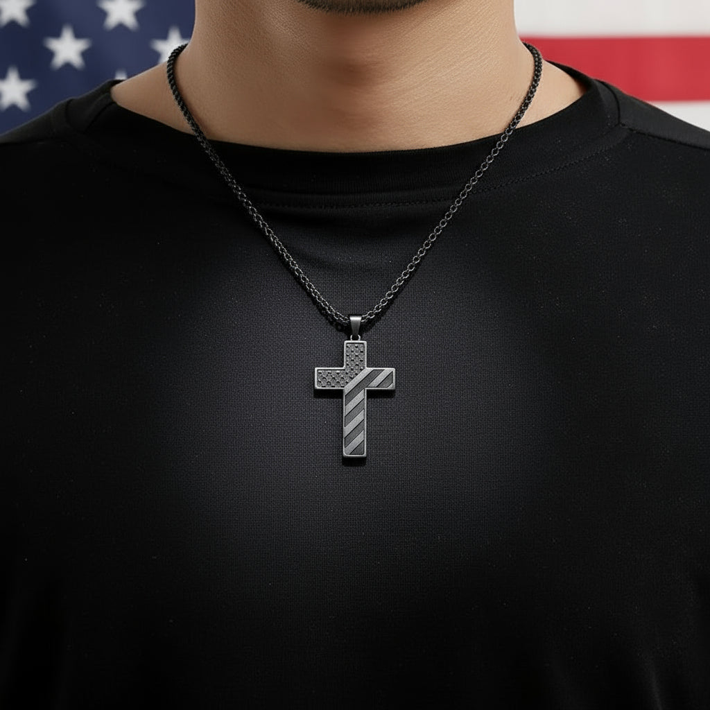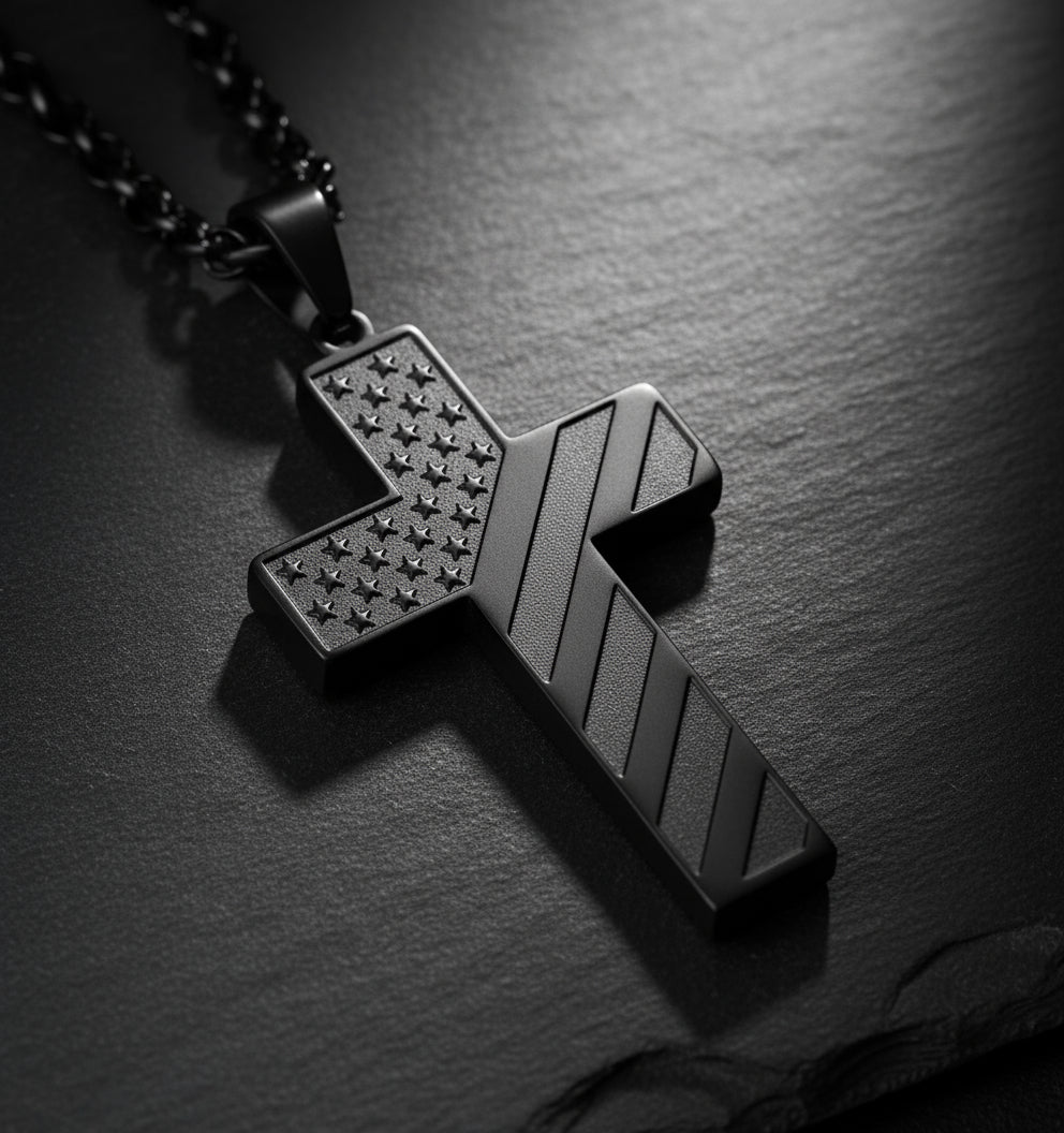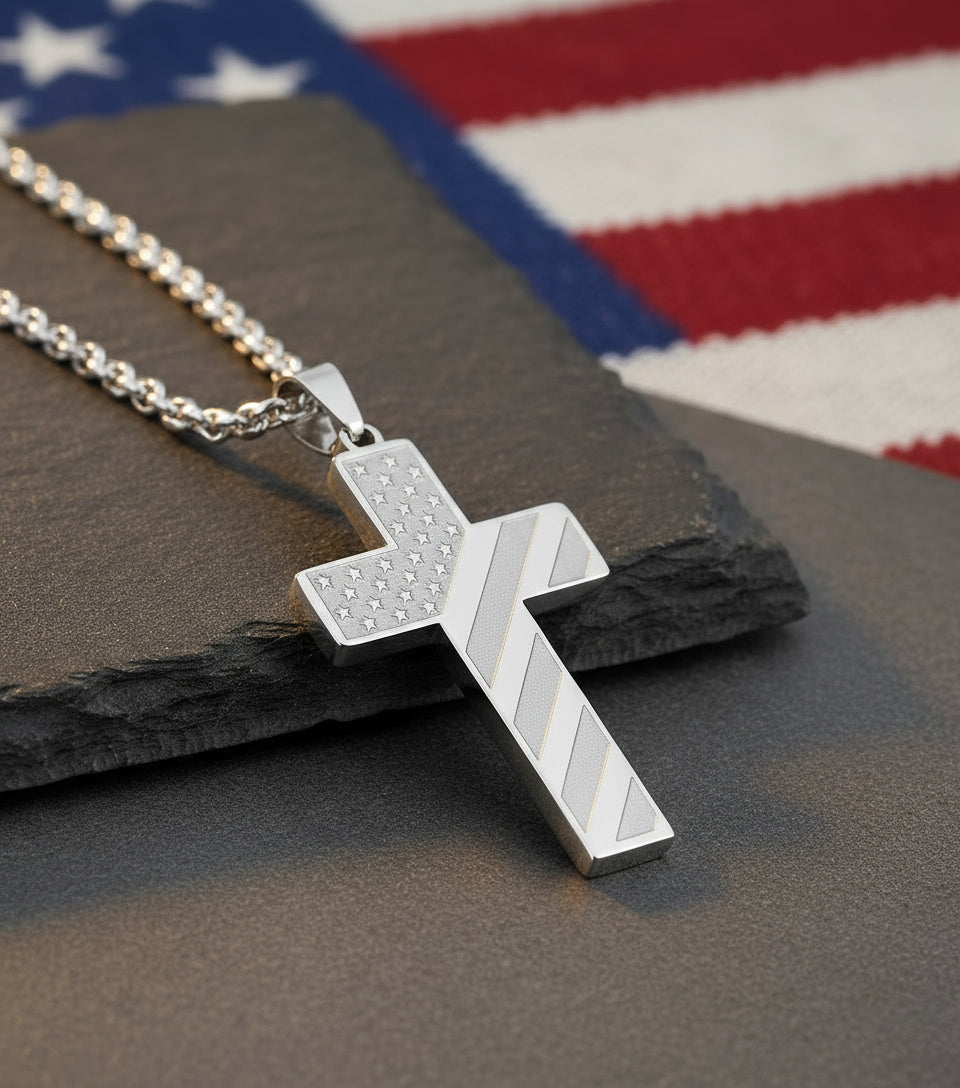 This cross pendant blends faith and patriotism in a durable, stylish design that inspires courage and pride every day.